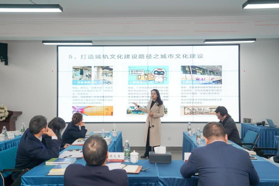 活动伊始,研究院执行院长伍定均代表研究院致辞。伍定均院长指出,“轨道即城市文化载体”理念,将轨道交通从“交通工具”升级为“城市文化走廊+经济纽带”,形成“轨道+文化+科技+产业”四位一体模式。 随后,张娜主任详细介绍了研究院在轨道交通文化研究、产业服务及行业资源整合等方面的成果,并展示了文化赋能交通的实践案例。同时,湖南磁浮交通发展股份有限公司企业管理科白帆科长,系统阐释了湖南磁浮在技术创新、文化品牌打造及社会服务中的探索与经验。