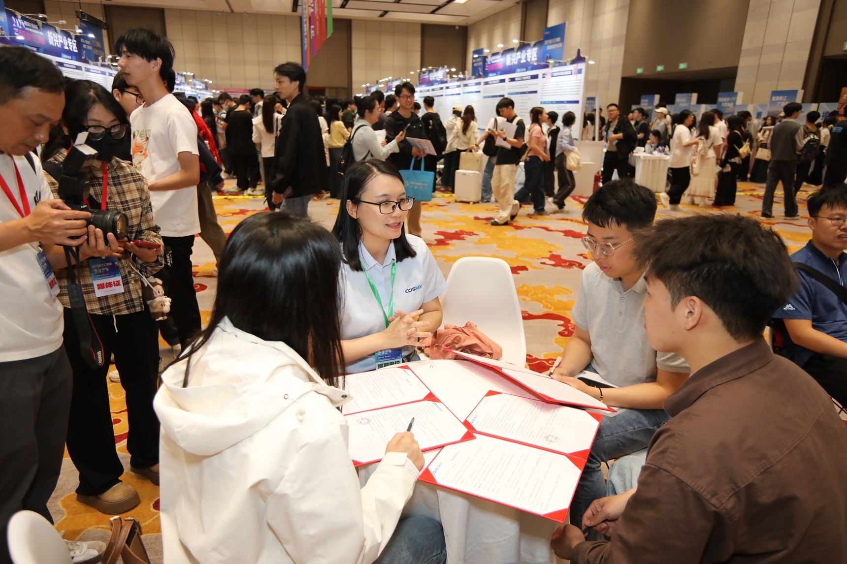现场设行业领军企业专区、新兴产业专区、国有企业专区、教育及医疗机构专区、博士博士后专区,约245个招聘展位,其中有12个特装展区,并穿插配备AI面试等功能区。“职场加油站”提供简历优化、面试辅导等服务,助力企业与人才的双向奔赴。现场还开启了“直播带岗”活动,多家企业相关负责人化身“带岗主播”,让高质量岗位“触屏可及”。