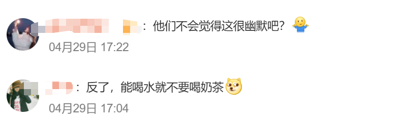 此外,图片显示,门店张贴的通知显示,“由于天气炎热,用水量剧增。很多淡水资源已经亮起了红灯。希望各位市民节约用水,能喝奶茶就不要喝水。把水留给不能喝奶茶的孩子,将爱心传播下去”。