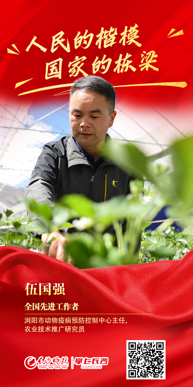 先后五次入选湖南省专业技术人才援藏工作队,远赴西藏山南市贡嘎县开展农牧新技术推广援助服务的浏阳市动物疫病预防控制中心主任,农业技术推广研究员伍国强,成立的“伍国强劳模创新工作室”荣获湖南省劳模助力乡村振兴示范基地,在辣椒杂交育种授粉技术攻关方面取得突破,为基层农业生产者提高生产效益发挥了积极作用。