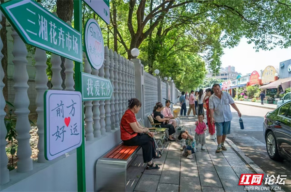 明苑街北侧的改造堪称点睛之笔——梧桐树荫覆盖的人行道变身 “花艺长廊”:浅灰色围栏悬挂着12幅本地花卉摄影作品,“花语信箱” 与防腐木长椅点缀其间。“过去路面坑洼、店铺招牌凌乱,现在随手一拍就是‘小清新’大片。”居住20年的张女士感叹,这条兼具观赏与休憩功能的街区,让居民实现了“家门口的微度假”。