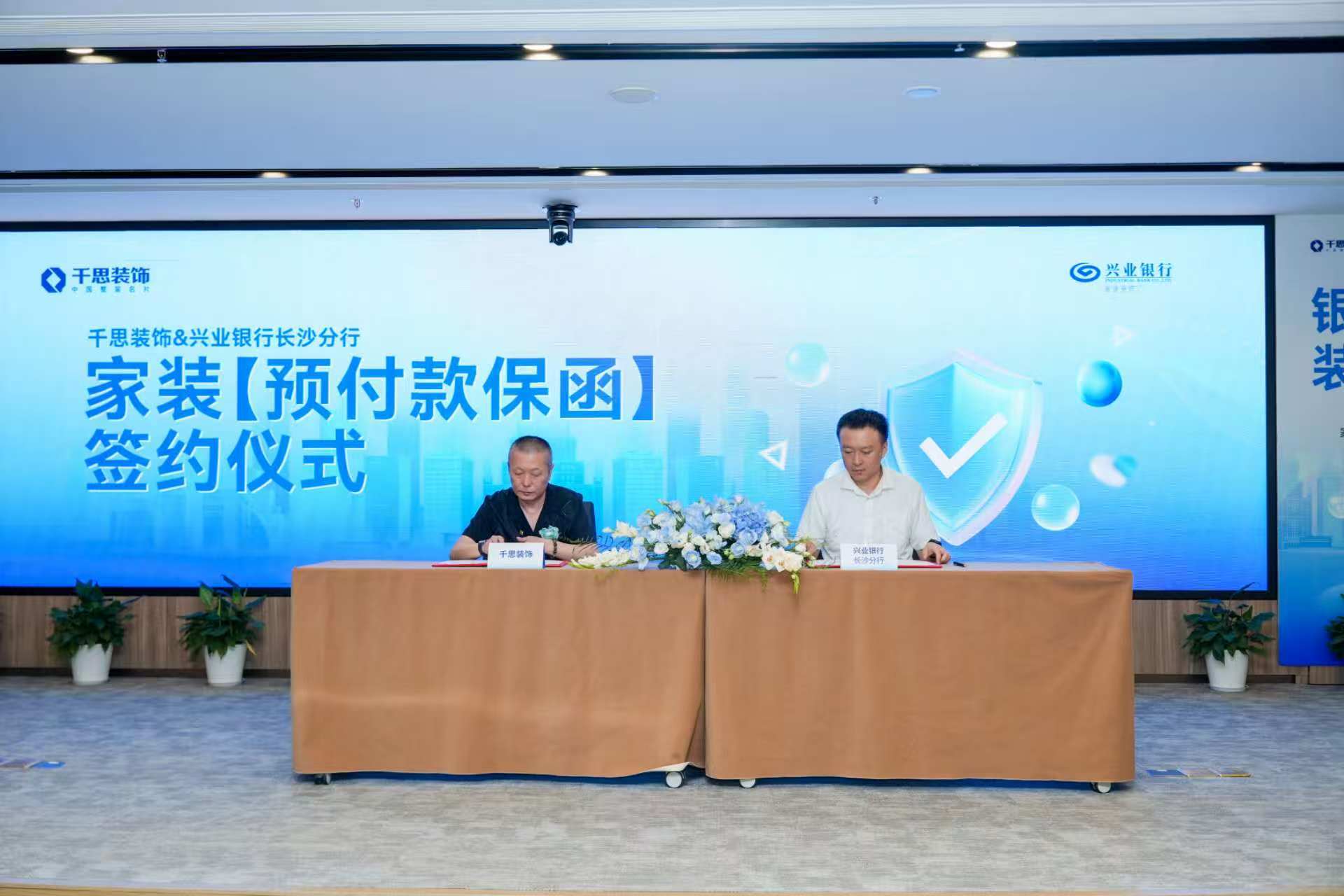 兴业银行长沙分行联合国内主流、湖南头部家装企业千思装饰一起,首推家装预付款保函业务,升级家装金融,既为消费者家装预付款资金保驾护航,也可助推头部家装企业健康发展,为家装行业高质量发展注入动能。