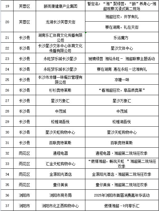 链接:2025湘超联赛长沙赛区“第二现场”促消费活动汇总表(持续更新,以主办方信息为准)