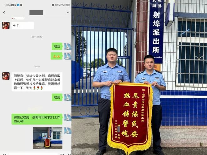 (记者 赵明 通讯员 彭孟强)“麻烦民警同志拿着锦旗拍张照片给我,我和妈妈都想看。”日前,湘潭县公安局射埠派出所收到一面寄自长沙的锦旗,送锦旗的杨女士在微信中这样叮嘱。这面锦旗背后到底有着怎样的故事?