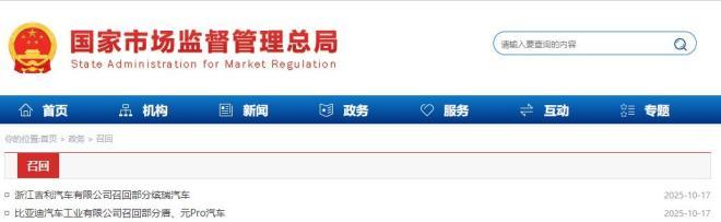 二、召回编号S2025M0166I:自即日起,召回2021年2月6日至2022年8月5日期间生产的部分元Pro纯电动汽车,共计71248辆。