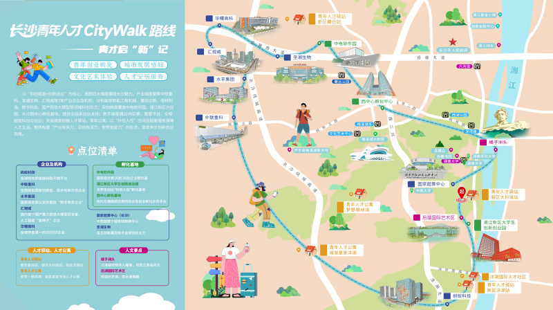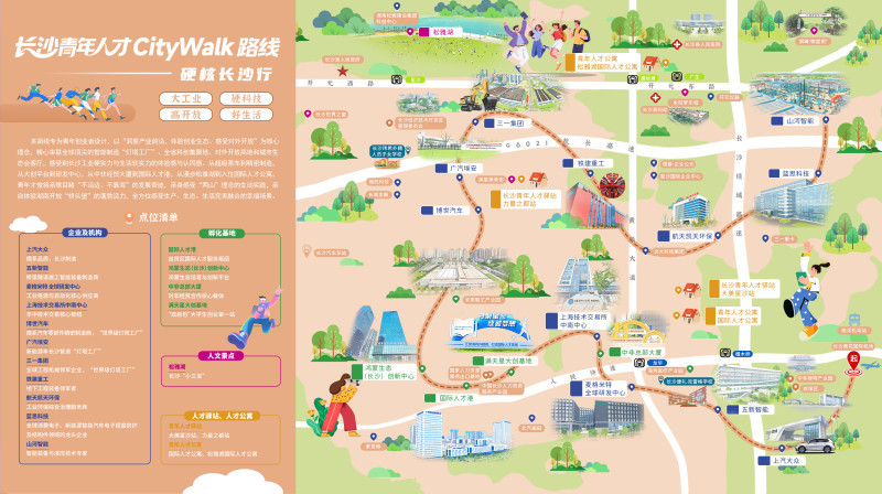 7条CityWalk路线依次为:青才启“新”记、文化科技交融、从烟火到星火 次元破壁之行、望见未来 “城”意之旅、硬核长沙行、浏YOUNG栖梦 焰耀前程、轻松看懂“新能源电池的一生”。它们精准聚焦青年关切,串联起长沙硬核产业的创新脉动、创业热土的蓬勃活力、安居温暖的民生温度与人文浪漫的独特底蕴,等待更多青年人才用脚步去解锁、用青春去续写属于自己与长沙的故事。