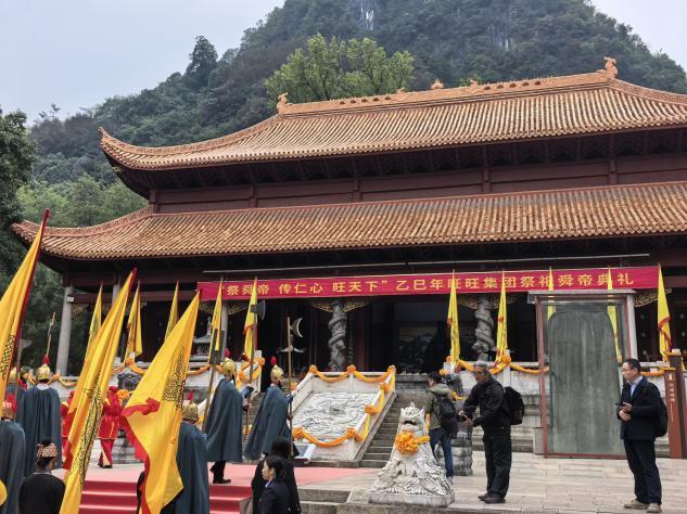 10月28日上午,“乙巳年旺旺集团祭祀舜帝典礼”在湖南省永州市宁远县九嶷山舜帝陵举行。旺旺集团董事长蔡衍明率集团高管及员工代表逾百人,循古礼击鼓鸣金、敬献三牲五谷百果,向中华民族人文始祖舜帝表达追思与敬意。