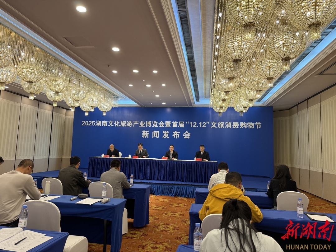 11月13日,2025湖南文化旅游产业博览会暨首届“12.12”文旅消费购物节新闻发布会在长沙举行。发布会宣布,本届展会由湖南省文化和旅游厅指导,湖南日报社主办,将于12月12日至14日在湖南国际会展中心(芒果馆)举办。