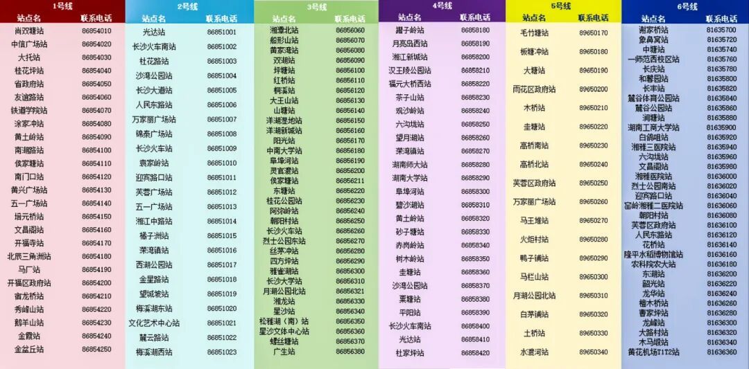长沙地铁各车站联系电话。