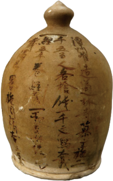 唐长沙窑青釉褐彩“潭州准造道林寺……“扑满