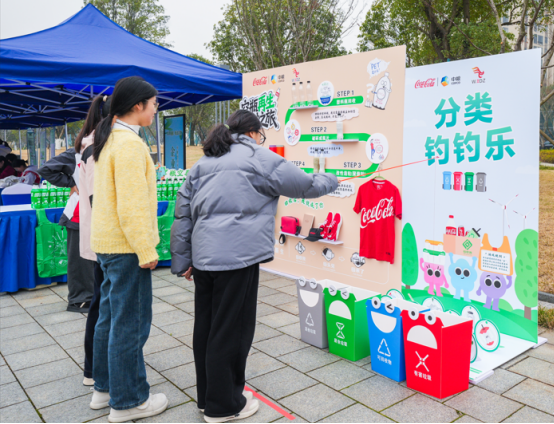 启动仪式现场,中粮可口可乐华中公司的展位前热闹非凡。不同于传统的政策宣讲模式,这次活动公司创新性地将环保理念融入趣味互动中,精心打造的 “垃圾分类钓钓乐” 活动吸引了众多嘉宾与市民驻足参与。参与者在轻松愉悦的游戏氛围中加深对垃圾分类知识的理解与记忆。“这个活动太有意思了,不仅好玩还能学到东西,原来很多平时容易混淆的垃圾分类,现在一下子就记牢了!” 一位参与体验的市民笑着说道。