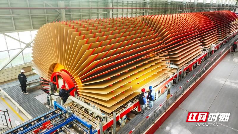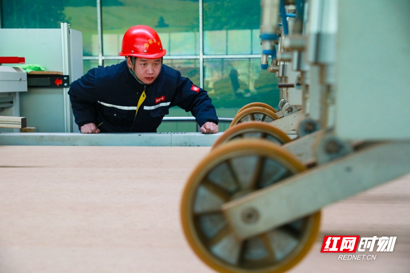 红网时刻新闻1月7日讯(通讯员 刘贵雄 陈祉凝)1月7日,湖南省永州市新田县产业开发区湖南鲁丽木业有限公司生产车间,工人在生产线上忙碌。新年伊始,湖南鲁丽木业开足马力忙生产,全力以赴赶制可饰面定向结构板海内外订单产品,努力实现新年“开门红”。