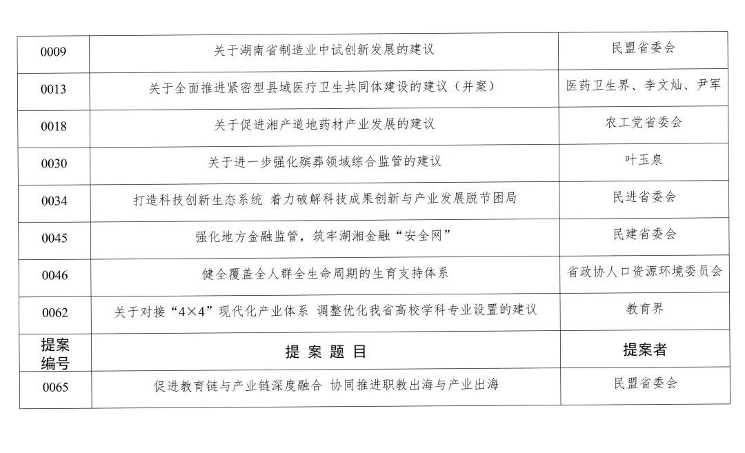 近日,根据《政协湖南省委员会提案工作条例》,经各民主党派省委会、省工商联,省政协各专门委员会,有关提案承办单位推荐,省政协提案委员会全体委员会议审议,省政协主席会议审定,现将《以构建全过程创新生态链为突破口推动科技创新与产业创新融合发展》等53件好提案名单予以公布。