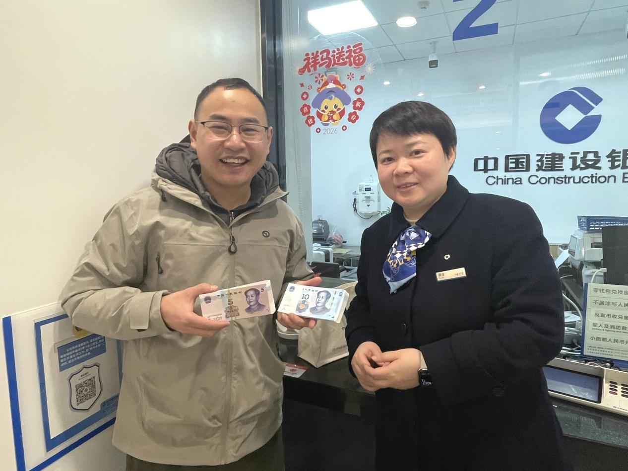 新钞服务年味十足。新年新气象,不少市民特意赶来,只为换一沓平整簇新的钞票,给孩子包压岁红包,给长辈备一份心意。湖南建行为了这份小小的期待,在全省开展“迎新春 兑新钱”主题活动,提前备足各种券别的新钞和零钱,通过动态监测、精准调配,重点保障了社区、乡镇与返乡客流集中的网点;积极拓展和优化线上预约功能,设立线下现钞预约和兑换绿色窗口,满足客户全方位需求。腊月初八至2月9日,共受理客户现钞预约1.4万笔,投放新钞36.75亿元。除此之外,网点工作人员还主动走进沿街商铺、社区,大力推广“零钱包”兑换服务,让商户不用多跑、不用久等,用簇新的钞票带着墨香与年味,点亮寻常人家的新春欢喜。