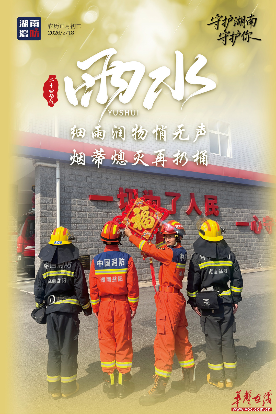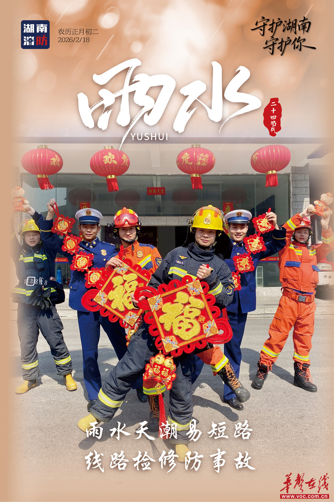 今日雨水,随着气温回暖、湿度攀升,“回南天”特有的潮湿环境容易引起电气火灾。湖南消防提醒:雨水时节,及时检查家中线路,保持电器干燥,谨防潮湿天气“走火”,让平安与春意一同生长。