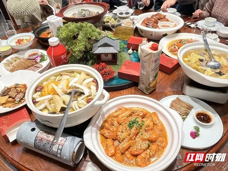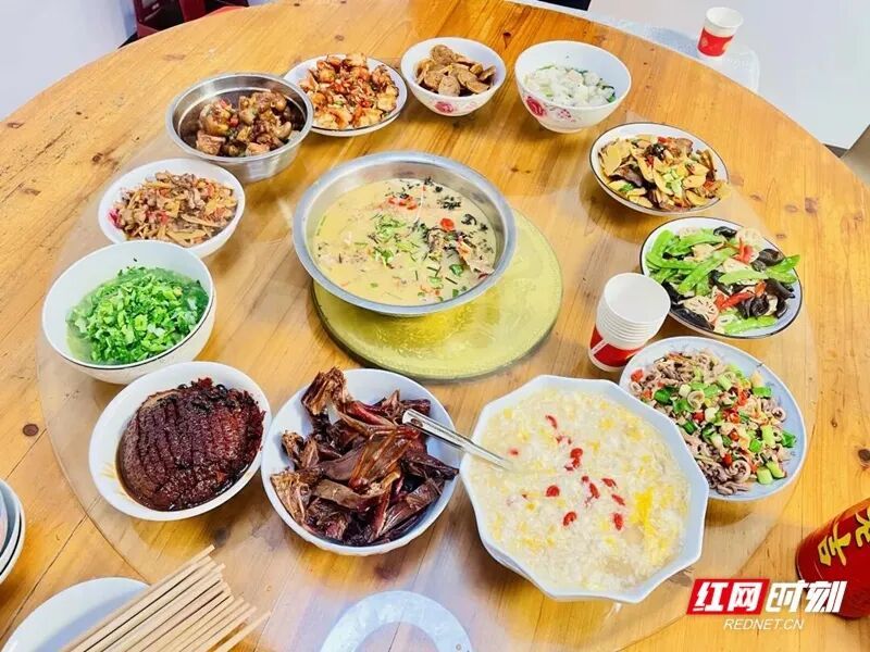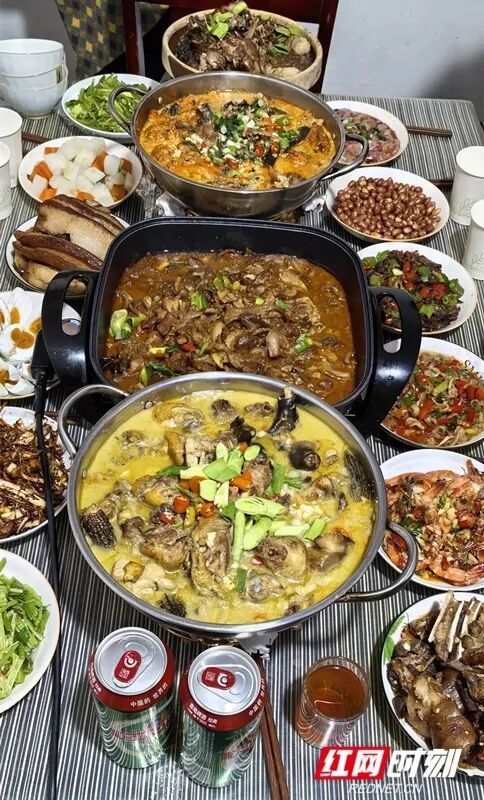 有湘西的腊蹄子,有长沙的蒸扣肉,有常德的钵子菜,有娄底的三合汤……每一张照片背后,都是一个热气腾腾的团圆故事。