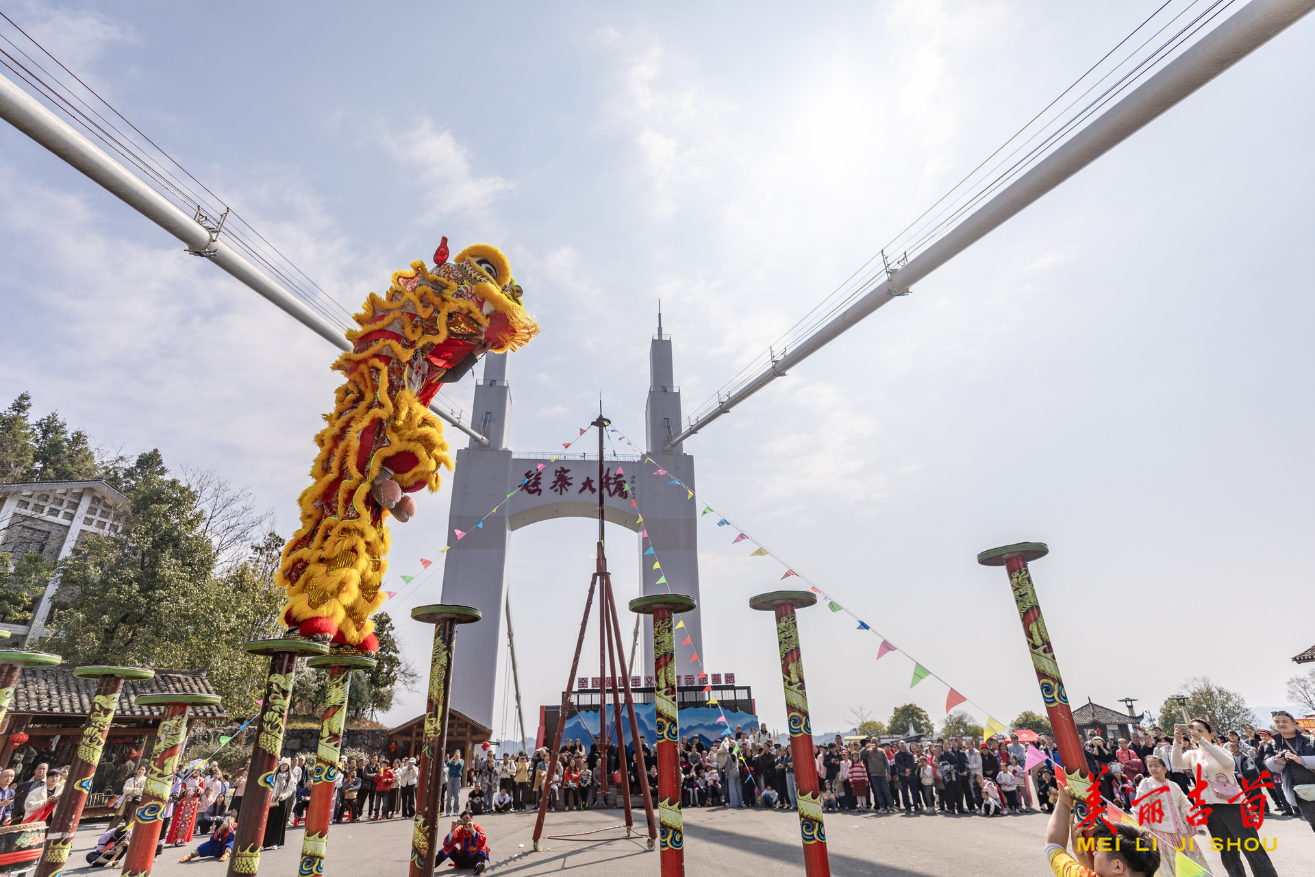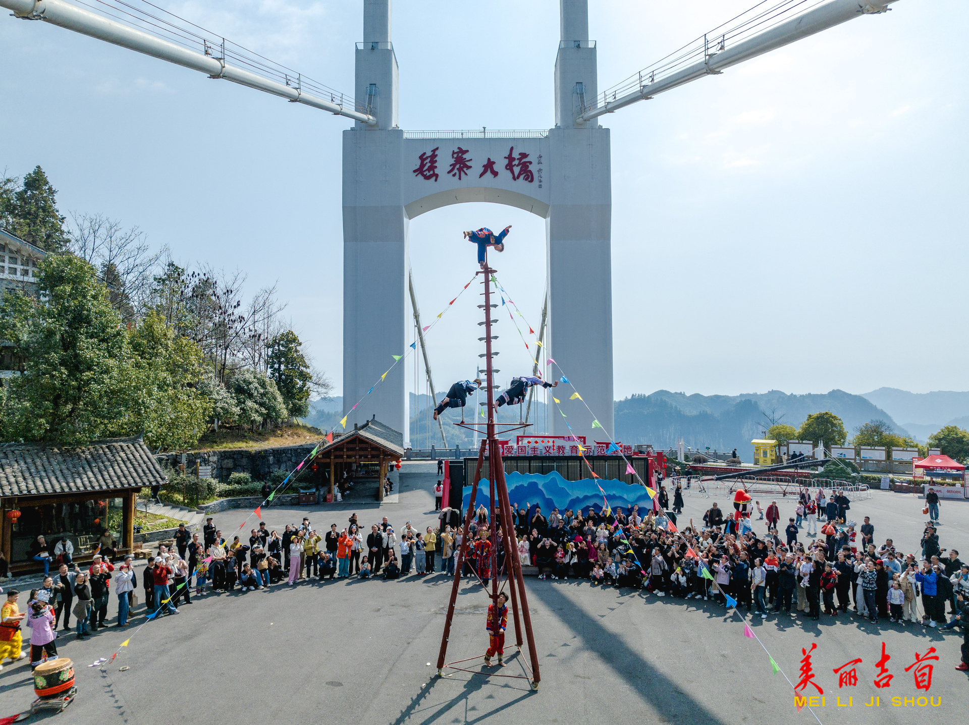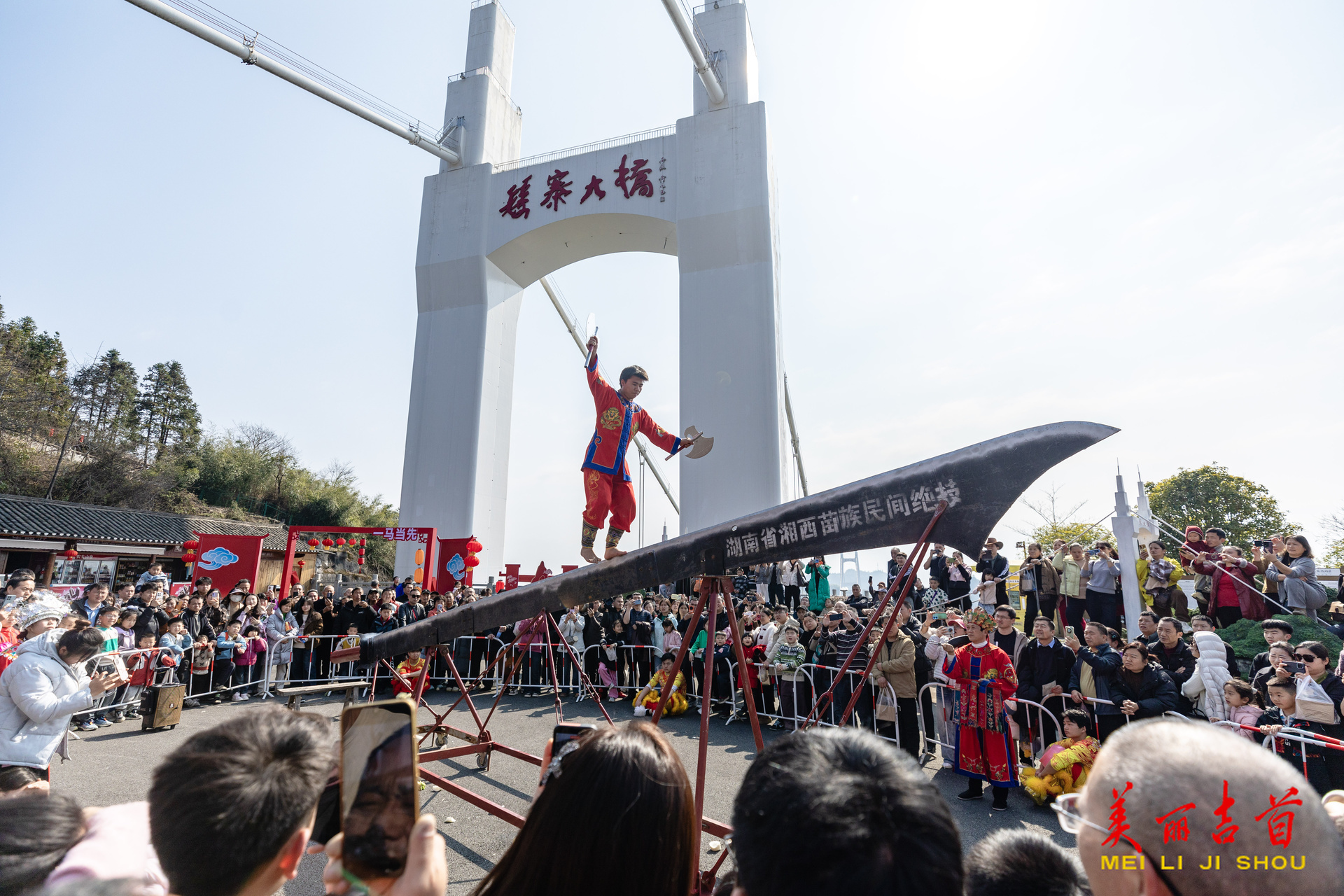 吉首市融媒体中心2月24日讯(全媒体记者 彭璟)春节假期,吉首市矮寨大桥景区推出“骏马舞春”非遗表演、NPC互动游戏、“苗鼓迎春”新春送福等系列活动,让游客在喜庆热闹的氛围中欢度佳节。