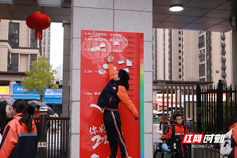 株洲市二中莲花中学开展“跃马扬鞭,福启新程”春季开学迎新活动。摸高签到、欢乐套圈趣味十足,雨天挡不住学子热情,全校师生以崭新风貌开启新学期。