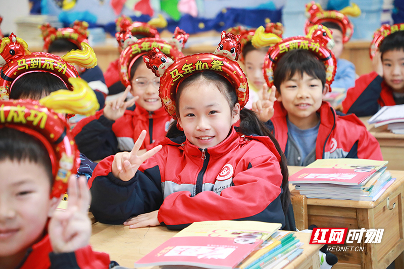 株洲市二中附属小学教室内外焕然一新,孩子们踊跃讲述旅行见闻与年俗趣事,掌声与欢笑声此起彼伏。