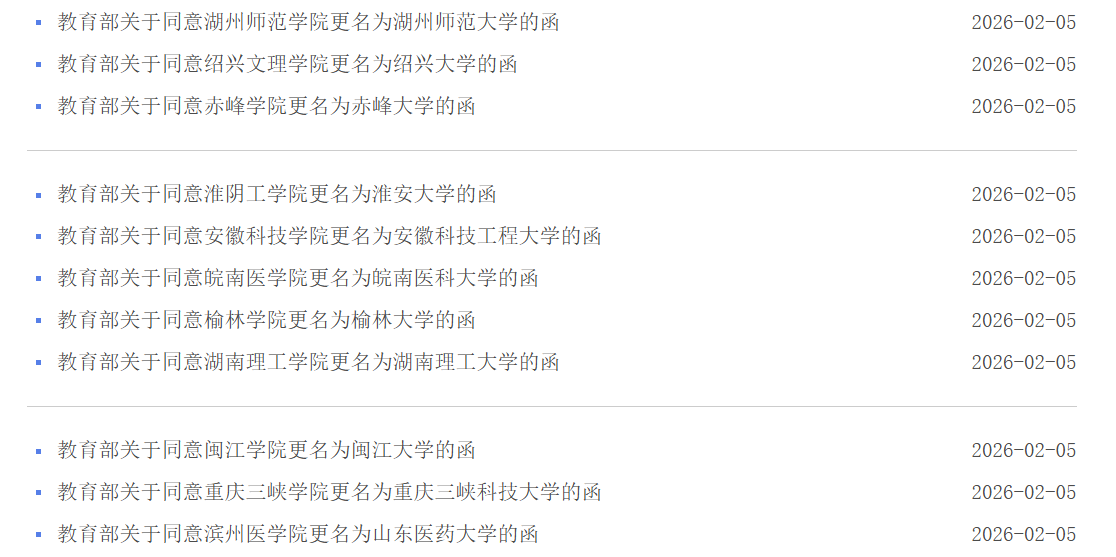 近日,教育部公布了多所地方高校由“学院”升格为“大学”的同意函。
