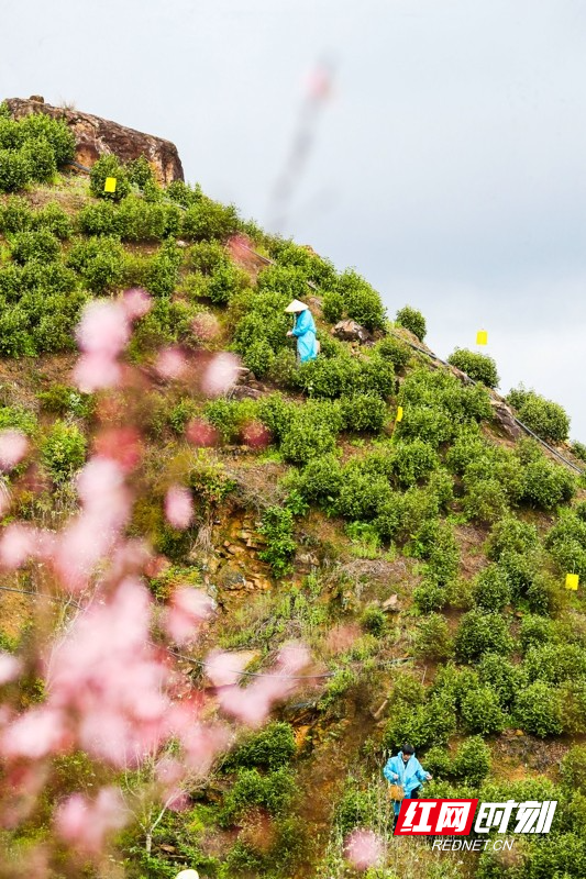 红网时刻新闻4月1日讯(通讯员 刘贵雄 陈祉凝)3月31日,湖南省永州市新田县大坪塘镇龙溪村,茶农在茶园采摘春茶。时下,湖南省新田县春茶迎来采摘期,当地茶农抢抓农时采摘茶叶,供应市场。